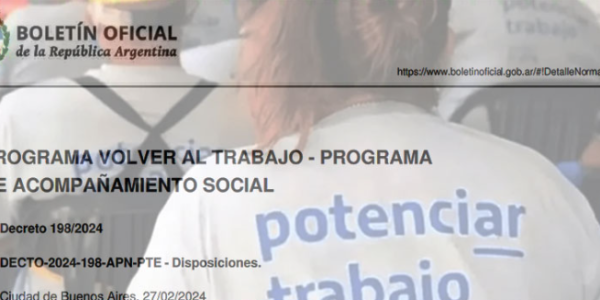 Decreto El gobierno nacional estableció la baja del Plan Potenciar Trabajo y su reemplazo por dos programas especializados denominados “Volver al Trabajo” y “Acompañamiento Social”. Qué dice el decreto. El Gobierno decidió eliminar el programa Potenciar Trabajo y crear otros dos…
