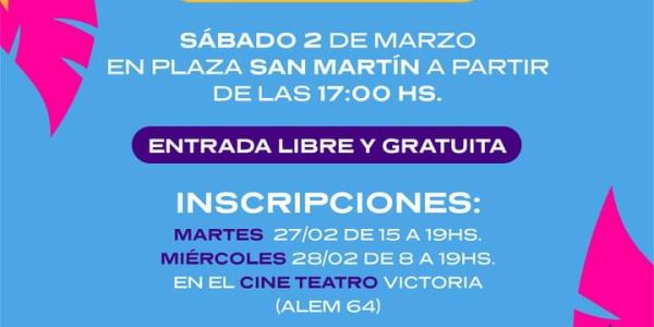 Victoria El Corso Infantil se realizará el ️ sábado 2 de marzo en Plaza San Martín a partir de las 17:00 ⌚. En este sentido, se aclara que las inscripciones que se habían realizado la semana pasada son válidas…