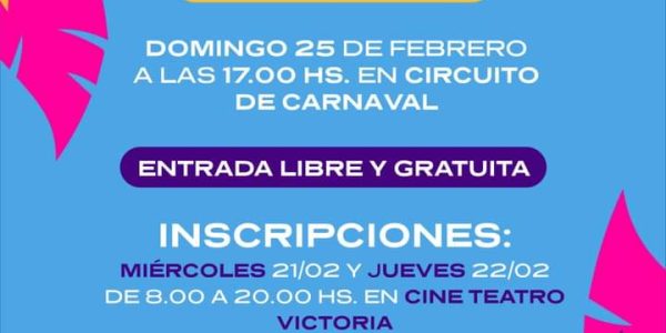 Victoria Este ️ domingo 25 de febrero, con entrada libre y gratuita, vamos a vivir el Corso Infantil . Va a empezar a las 17:00 ⌚ en el circuito de carnaval. ℹ️ Las inscripciones pueden realizarse hoy, miércoles…