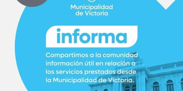 Victoria Compartimos a la comunidad información útil en relación a los servicios prestados desde la Municipalidad de Victoria. OBRAS VIALES Y LIMPIEZA: * Limpieza de desagües pluviales en calle Perón, Hornos, Hernandarias, Sarmiento y zona. * Reparación…