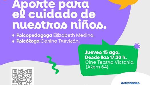 Victoria En el marco de las actividades del Día del Niño, vamos a realizar un conversatorio para el cuidado de los niños de nuestra comunidad con la psicopedagoga Elizabeth Medina y la psicóloga del Copnaf Carina Trevisán. Será el jueves…