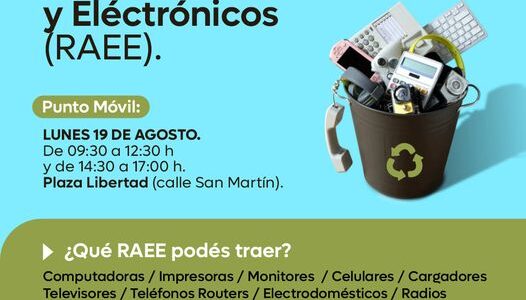 Victoria Anotá : el lunes 19 de agosto, de 09:30 a 12:30 h y de 14:30 a 17:00 h, en Plaza Libertad ( calle San Martín) comenzamos a desarrollar el punto móvil de Recepción de Residuos aparatos Eléctricos y Eléctricos…
