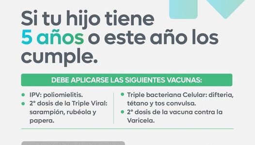Si tu hijo tiene 5 años o este año los cumple… Debe aplicarse las siguientes vacunas