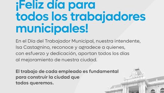 Victoria En el Día del Trabajador Municipal, nuestra intendente, Isa Castagnino, reconoce y agradece a quienes, con esfuerzo y dedicación, aportan todos los días al mejoramiento de nuestra ciudad. El trabajo de cada empleado es fundamental para construir la ciudad…