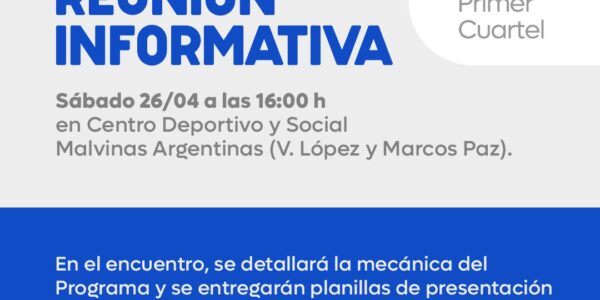 Victoria La Municipalidad de Victoria va a realizar la primera reunión informativa del Presupuesto Participativo 2025. Va a ser el sábado 26 de abril a las 16:00 h, en el Centro Deportivo y Social Malvinas Argentinas (V. López y Marcos…