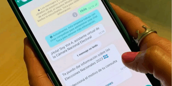 Cámara Nacional Electoral El chatbot oficial “Vot-A” está disponible en WhatsApp para asistir a los electores: ofrece información sobre la Boleta Única de Papel, autoridades de mesa, voto en el exterior y justificación de no emisión. Los detalles. A poco…