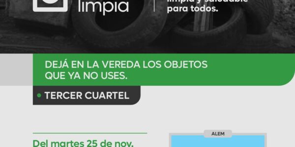 Ciudad Retiramos de forma programada tus objetos en desuso. ¿Qué podés sacar? Tachos, neumáticos, botellas, chatarra, todos tus recipientes y objetos en desuso. También, podés sacar ramas, restos de poda, tierra y escombros. Es muy importante que al retirar estos…