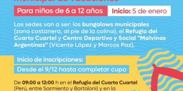 Victoria La Municipalidad de Victoria ha confirmado la puesta en marcha de la Colonia Municipal de Vacaciones para el verano 2026, un servicio que busca garantizar el acceso a actividades recreativas y deportivas para la niñez de la ciudad. Julio…
