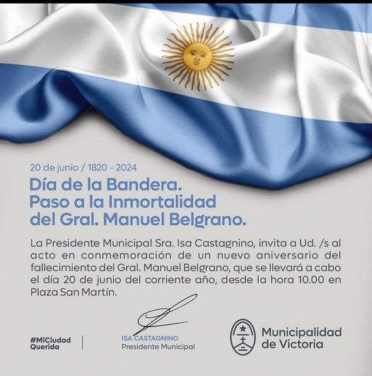 • Himno Nacional Argentino, Marcha de Entre Ríos, Canción Oficial a Victoria, ejecutada por la Banda Municipal de Música “Sebastián Ingrao”.