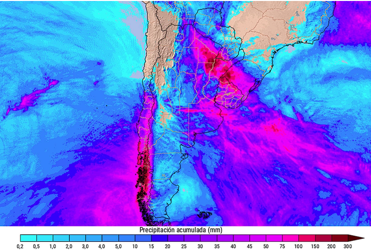 El impacto de la depresión atmosférica “provocará intensas lluvias y nevadas en la cordillera de Los Andes”, indica el informe publicado en Meteored.