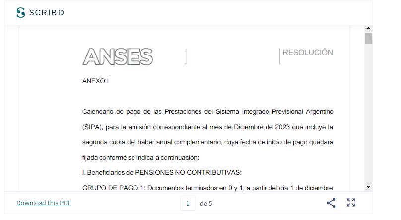 CRONOGRAMA DE PAGO DE DICIEMBRE DE 2023 Y AGUINALDO PARA JUBILADOS Y PENSIONADOS NACIONALES