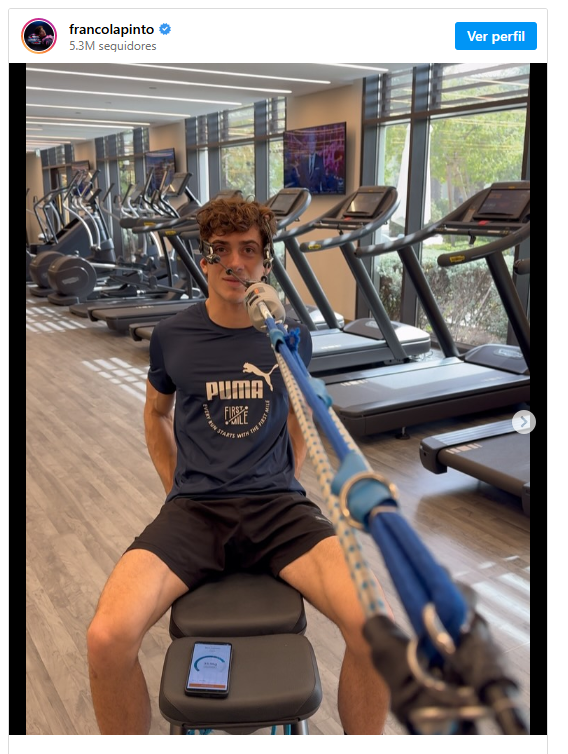 En su cuenta de Instagram, Colapinto compartió videos donde se lo ve entrenando con un arnés especial para musculatura cervical, realizando decenas de repeticiones monitorizadas con una aplicación en su celular. Junto al trabajo físico, practica reflejos y coordinación mediante luces que se encienden de forma aleatoria sobre el suelo, un ejercicio vital para la agilidad mental y física indispensable en la F1.