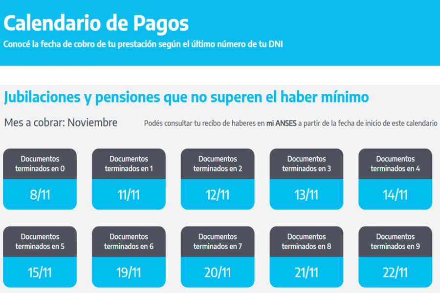 Tras ello, desde Anses confirmaron a Elonce el detalle de los cronogramas para noviembre.
