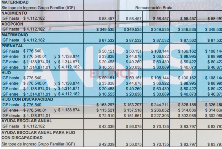 En tanto, la Asignación por Nacimiento será de $ 58.457, la Asignación por Adopción aumentará a $ 349.535, la Asignación por Matrimonio trepará $ 87.532, siempre que el Ingreso General Familiar (IGF) no supere los $ 4.112.182. La asignación Prenatal escalará a $ 50.151para los sectores que perciban menores haberes, con variaciones basadas en el ingreso familiar, descendiendo hasta $ 10.553 según el rango arriba explicitado.
