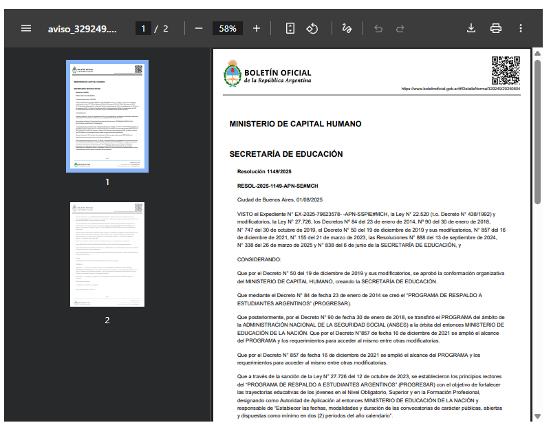 La Secretaría explicó que “la nueva convocatoria responde a la normativa vigente y a las modalidades establecidas dentro del reglamento general del programa, que prevé al menos dos instancias de inscripción anuales para garantizar mayor acceso y acompañamiento tanto a jóvenes que buscan concluir la educación obligatoria como a quienes buscan profesionalizarse en el ámbito superior o en carreras vinculadas a la salud”. (Con información de Boletín Oficial e Infobae)