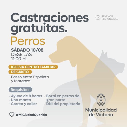 La Municipalidad de Victoria, desde su Área Veterinaria, continúa con la campaña de castraciones sin arancel a perros.