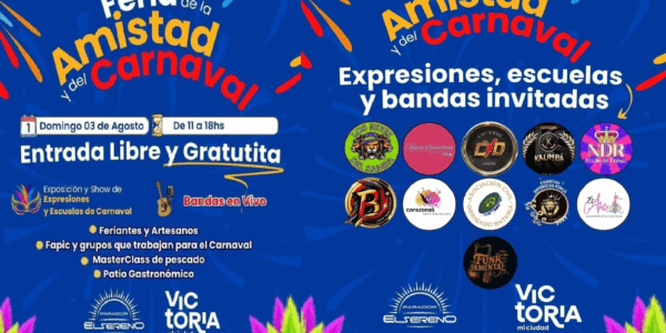Victoria DOMINGO 03 DE AGOSTO Apartir de las 11.00 h En Parador el Sereno Bandas en Vivo Patio Gastronómico Feriantes, productores y Artesanos Exposición y show de expresiones y escuelas de Carnaval ENTRADA LIBRE Y GRATUITA Playa Alta | Av….
