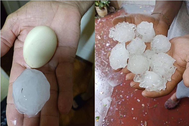 También cayó granizo de importante tamaño en una zona de Nogoyá.