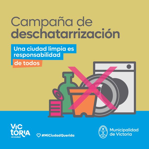 HomepageLocales¡Comienza La Campaña de Deschatarrización! Locales Sociedad ¡Comienza La Campaña de Deschatarrización! Victoria Al Día Posted on 26/01/2024 Victoria Si vivís en el barrio La Ponderosa y en el Primer Cuartel, el martes 30 de enero y el jueves 1 de febrero sacá a la vereda de tu casa todos los objetos que ya no te sirvan. Porque una ciudad limpia es responsabilidad de todos. Navegación de entradas Previous PostJavier Milei tomó la decisión de despedir al ministro Guillermo Ferraro Next PostRecolección de Material Reciclable You Might Also Like Locales Municipalidad de Victoria aclara en relación a un mensaje falso que circula en Redes Sociales Victoria Al Día 06/02/2024 Nacionales Quini 6: 37 apostadores ganaron más de $5.049.000 en el Siempre Sale y siguen los pozos millonarios Victoria Al Día 25/11/2024 Internacionales España extiende el plazo para tramitar la ciudadanía por la Ley de Nietos Victoria Al Día 20/04/2025 Noticias Comienza a subir gradualmente la temperatura y no se descartan lluvias en algunas zonas Victoria Al Día 29/09/2025