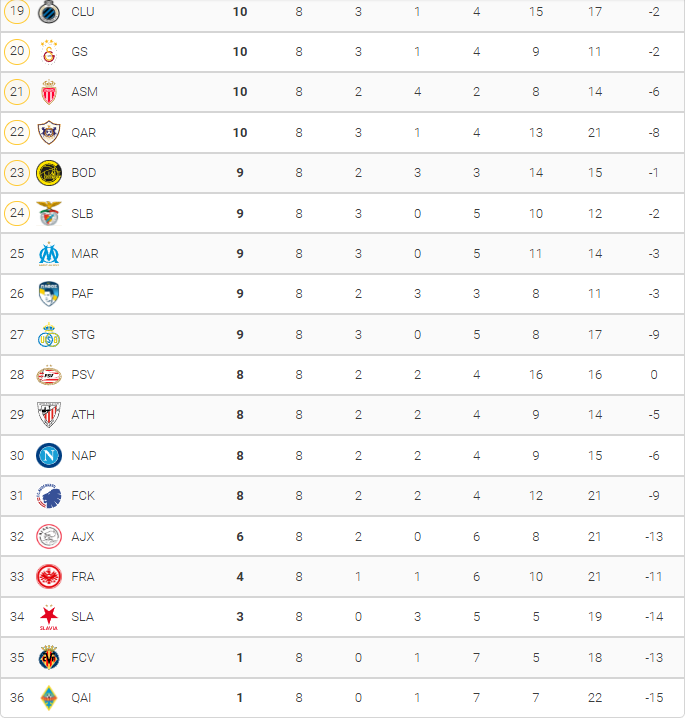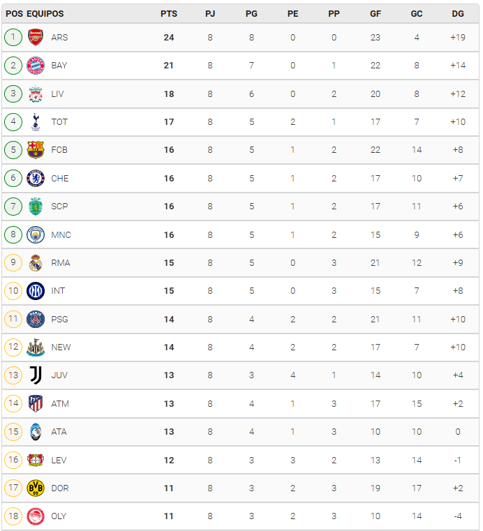 Así terminó la Fase Liga de la UEFA Champions League