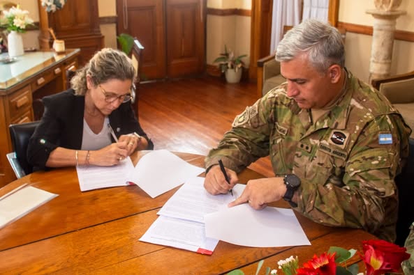 En representación del Ejército Argentino, firmó el convenio el jefe del Batallón de Ingenieros Blindado 2 “General José Francisco Ramírez”, teniente coronel Alejandro Aristarco Candia Michel.