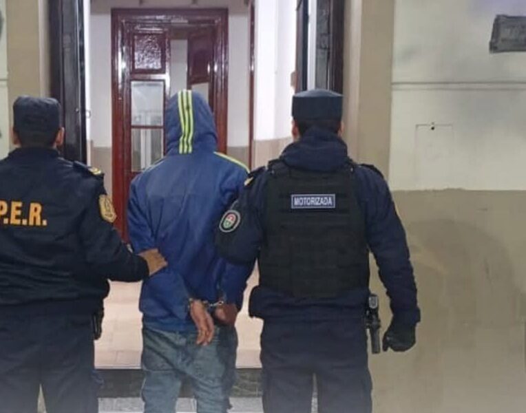 En la víspera, siendo las 21:00 horas personal del Comando Radioeléctrico interceptó en calle Piaggio y España, un masculino de 21 años de edad, (con antecedentes policiales y judiciales) el cual había sido denunciado en horas de la tarde por una ciudadana mayor de edad domiciliada en el 2° Cuartel por la sustraccion de un telefono celular, y al proceder al palpado se le localizó entre sus prendas el aparato telefonico, como así tambien un Cuchillo con vaina y un arma de fuego tipo Revolver calibre 38, con cartucheria, este ultimo elemento había sido denunciado minutos antes de la aprehensión por un vecino de esta ciudad domiciliado en el 4° Cuartel.
