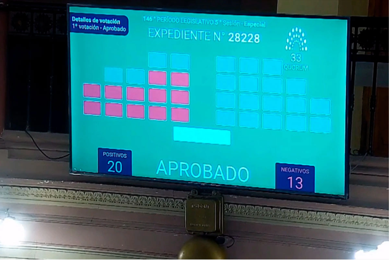 Se votó de manera electrónica el dictamen de mayoría, en primera instancia, el proyecto en general, el cual obtuvo 20 afirmativos y 13 votos negativos. De esa manera, el proyecto fue aprobado.