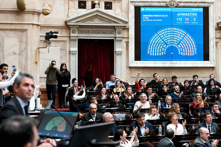 Sin embargo, el gesto no alcanzó para frenar la decisión de los bloques opositores, que lograron los votos necesarios para insistir con la ley. El presidente de la Cámara, Martín Menem, había recordado que se requerían dos tercios tanto para habilitar el debate como para rechazar el veto.