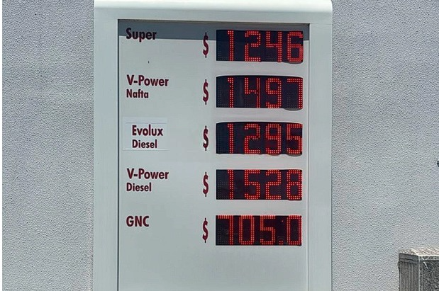 -V-Power nafta: $ 1497 (antes salía $1485 y la suba representa 0,80%)