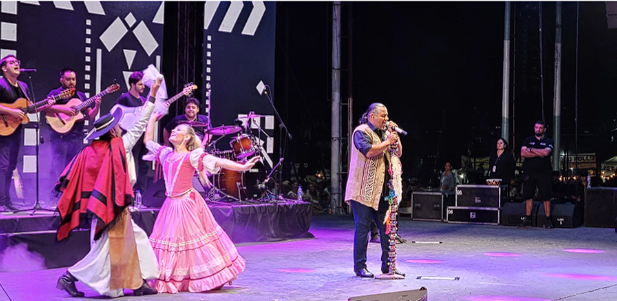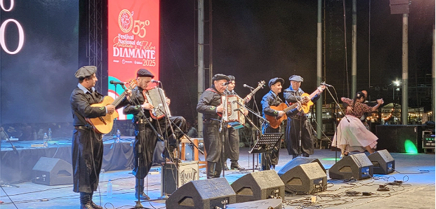 Previamente, por primera vez en el festival, los uruguayos que integran Sinfónica de Tambores hicieron reír y bailar al público diamantino. Luego, un momento emoción y aplausos dejó el intercambio de banderas que se produjo entre los pueblos hermanos.