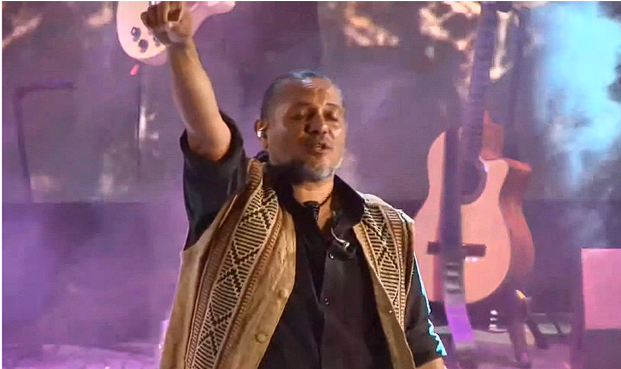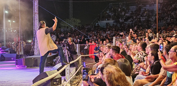 Así también, El Indio compartió escenario con los integrantes del coro de lenguaje de señas de Diamante, con quienes interpretó De tanto en tanto.
