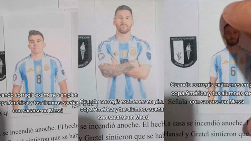 “Cuando corregís exámenes en plena Copa América y tus alumnos sueñan con sacarse un ‘Messi'”, escribió el docente en el video que rápidamente se viralizó, por su creatividad e ingenio.