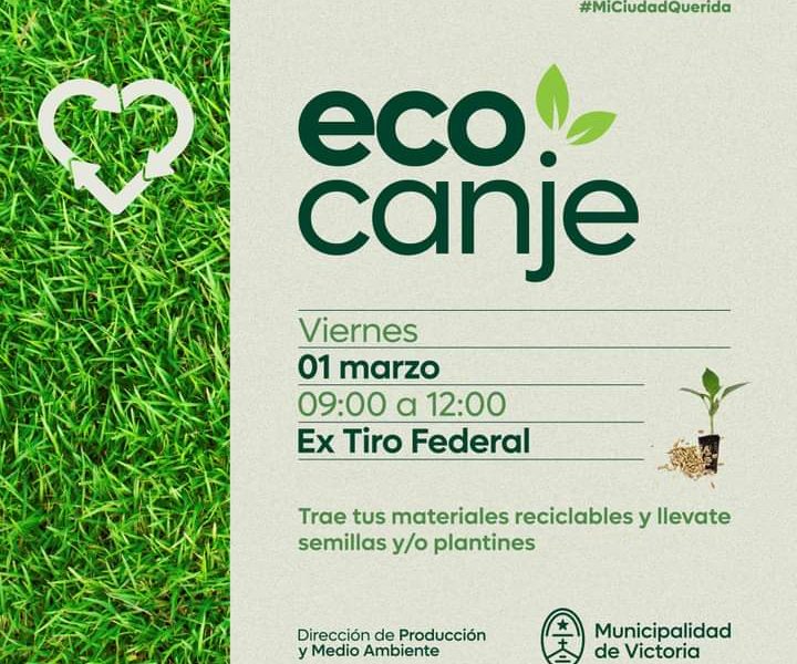 El ️ viernes 1 de marzo vamos a hacer una jornada de Eco Canje. Va a ser en el ex Tiro Federal ( 25 de Mayo y Boulevard Eva Perón), de 09:00 a 12:00 ⌚.