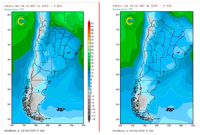 “El descenso térmico se sentirá con fuerza entre el miércoles 28 y el sábado 31 de mayo”, destaca el informe. En regiones como el centro y norte del país, se esperan mínimas de entre -4 °C y 8 °C, mientras que las máximas no superarán los 10 a 16 °C. En la Patagonia, las condiciones serán aún más extremas, con mínimas que podrían descender hasta los -10 °C.