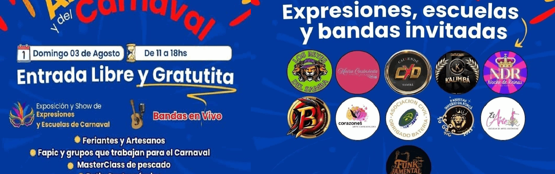 HomepageLocalesFeria de la AMISTAD y el CARNAVAL Locales Sociedad Feria de la AMISTAD y el CARNAVAL Victoria Al Día Posted on 29/07/2025 Victoria DOMINGO 03 DE AGOSTO Apartir de las 11.00 h En Parador el Sereno Bandas en Vivo Patio Gastronómico Feriantes, productores y Artesanos Exposición y show de expresiones y escuelas de Carnaval ENTRADA LIBRE Y GRATUITA Playa Alta | Av. Costanera y Laprida Navegación de entradas Previous PostSanta Fe decretó 72 horas de duelo por la muerte de “Locomotora” Oliveras Next PostEntrerriana avanza en el certamen La Voz Argentina You Might Also Like Nacionales El estado de salud de los alumnos heridos tras ataque en la escuela de San Cristobal Victoria Al Día 31/03/2026 Internacionales Desarrollan vacuna universal contra la gripe que daría protección de por vida Victoria Al Día 24/07/2024 Locales Acto por el Día de la Bandera Victoria Al Día 19/06/2024 Noticias Abril se despide con días primaverales en pleno otoño: pronóstico para esta semana Victoria Al Día 28/04/2025