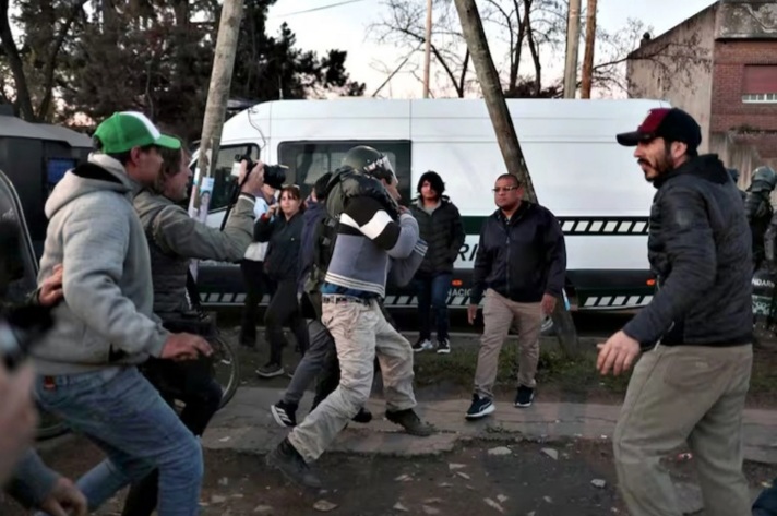 Pasadas las 19:40, los hechos de violencia escalaron. Cristian Mercatante, ex participante del reality show El Bar, fue agredido mientras cubría el evento para un medio digital. Le partieron una botella en la cabeza mientras entrevistaba a encapuchados que estaban en el lugar. “Estaba haciéndole una entrevista a los encapuchados que estaban ahí y me dieron un botellazo. No tengo ni idea quién fue. Yo fui a preguntarles si eran personal policial porque la gente estaba enojada con ellos y no me contestaron. Cuando me di vuelta, me cayó algo que me dejó así”, declaró ante la prensa mientras la sangre le caía por el rostro. “Estoy bien, ahora me voy a atender”, agregó.