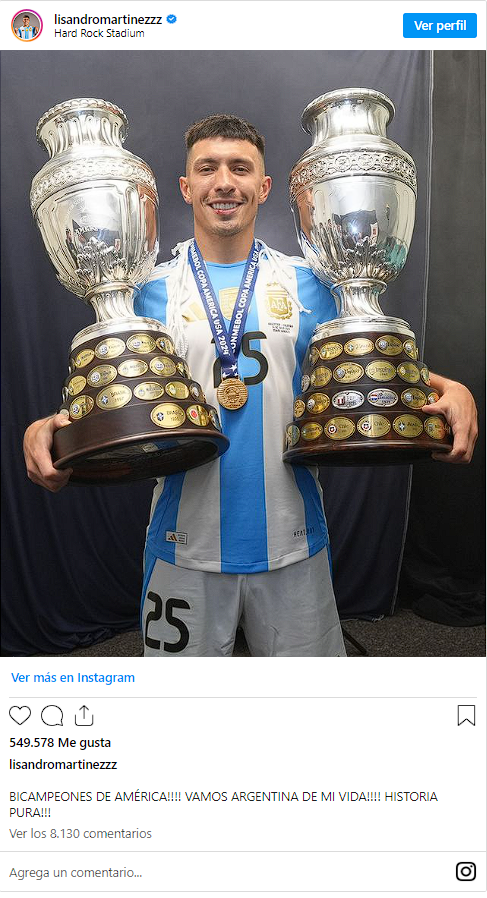 La Selección Argentina revalidó el título de la Copa América en su edición 2024 con la victoria 1-0 en tiempo extra sobre Colombia. A lo largo de los 120 minutos, Entre Ríos estuvo muy bien representada por Lisandro Martínez.