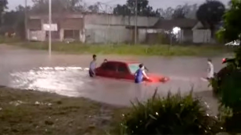 En videos virales, se puede observar cómo una auto quedó varado en medio de la avenida Entre Ríos, debió ser asistido para poder seguir su marcha.