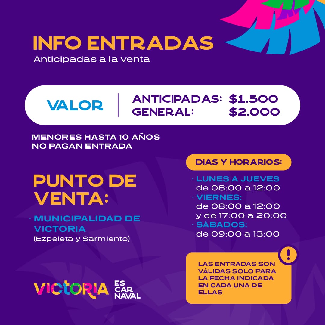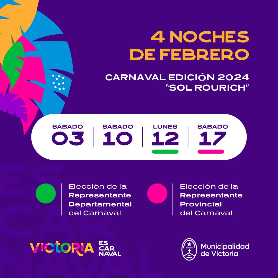 El carnaval de Victoria da inicio este sabado 3 de febrero, y se extenderá por tres sábados consecutivos, siendo la noche del 12 de febrero la elección de la Represente Departamental del Carnaval, y el 17 la elección Provincial.