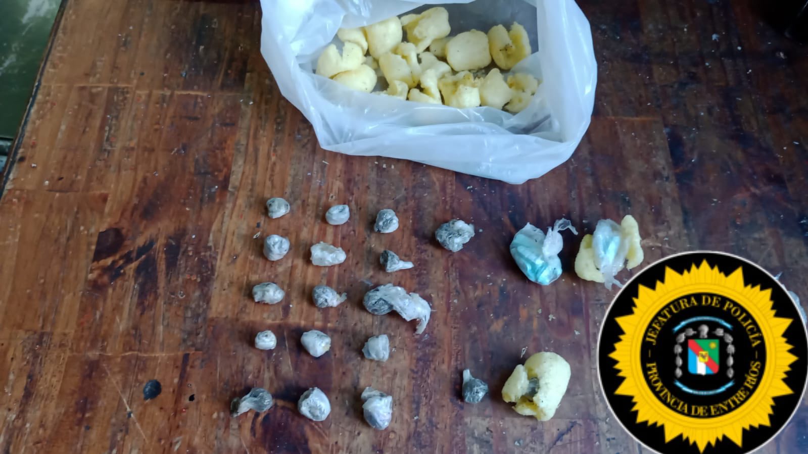 En la tarde de este lunes, personal penitenciario descubrió a un hombre que intentaba ingresar pertenencias a un interno de la cárcel de Victoria, ocultando **18 envoltorios con marihuana y 15 comprimidos** dentro de una bolsa de chisitos.
