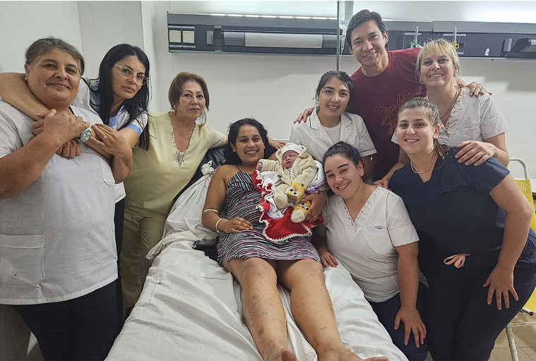 Las enfermeras de Maternidad que están cuidando a la beba y su mamá son Laura Gómez, Delia Valdez, Adriana Zapata y Agustina Cettour, como así también la enfermera de Neonatología Jennifer Fleitas. Fuente: El Once