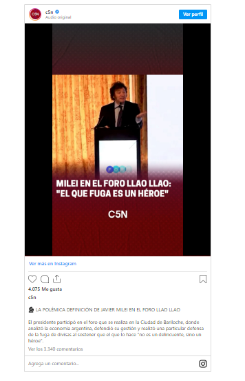 “El problema central es el déficit fiscal. Tiene déficit, lo financian con emisión, pierden reservas, aparece la ley cambiaría para que no puedan cambiar dólares. Financian el déficit, generan inflación ¿y que hacen? Controles de precios, aparece la ley de góndolas ¿Y qué pasa cuando controlan precios? Aparece el desabastecimiento. Se van los dólares, ponen control de capitales y el que fuga es un delincuente. Es un héroe que logró escaparse de las garras del Estado”, afirmó.