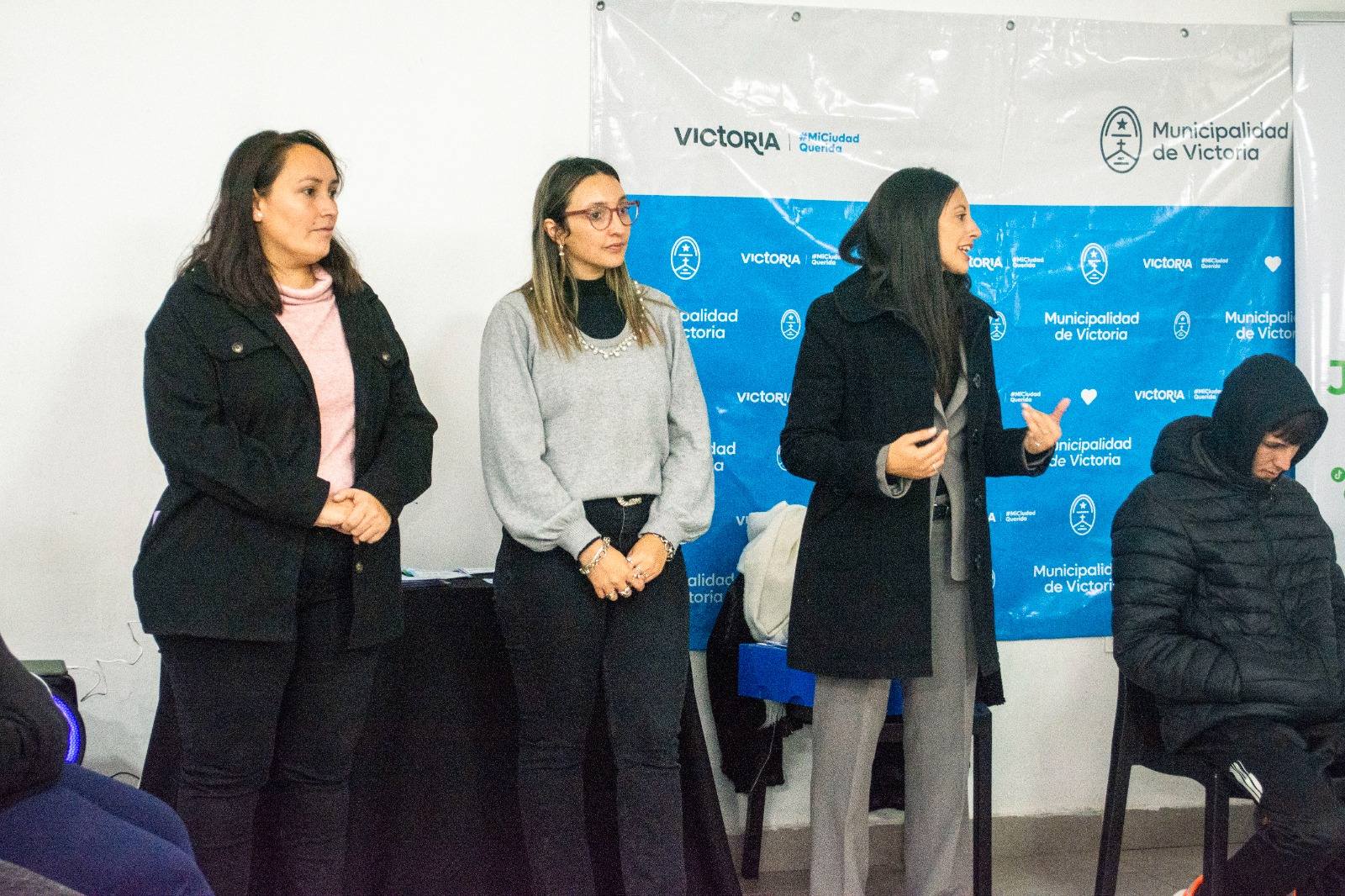 La intendente, Isa Castagnino, junto a la secretaria de Gobierno, Lucina Menescardi, y la secretaria de Desarrollo Social y Humano, Sabina Etchart, recibieron a autoridades provinciales en el marco de dos talleres realizados de manera conjunta entre la Municipalidad de Victoria y el Gobierno de Entre Ríos.