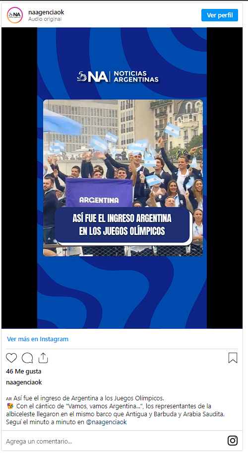 Parte de los 136 deportistas argentinos que participará en 25 disciplinas apareció en el Río Sena, luego de la delegación de Arabia Saudita, con el típico color y alegría que tienen los representantes nacionales y cantando “¡vamos vamos, Argentina!”. Fuente: El Once