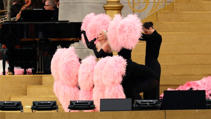 Lady Gaga brilló en la ceremonia de apertura de los Juegos Olímpicos de París. La artista estuvo rodeada de bailarines y grandes plumas, con un espectáculo brillante con grandes coreografías.