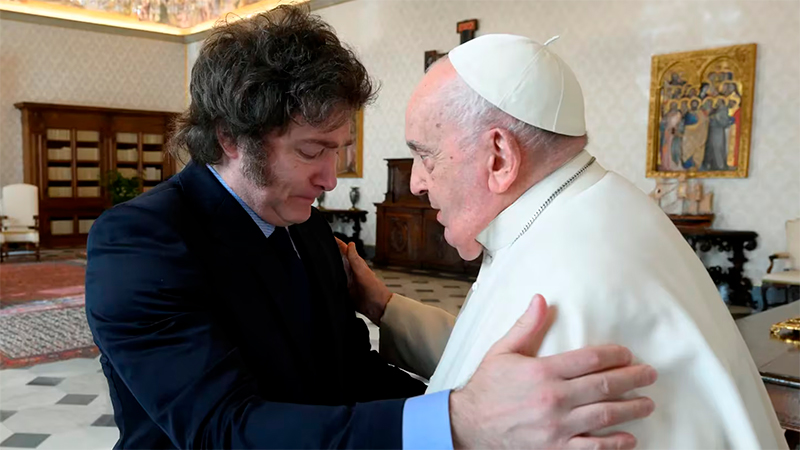 Milei se reunió con el papa Francisco en una audiencia privada en el Vaticano que sirvió para sellar el relanzamiento de la relación. El encuentro duró una hora y fue en el Palacio Apostólico, con ejes en la crisis social que atraviesa el país, la grieta política y la invitación para que visite la Argentina.