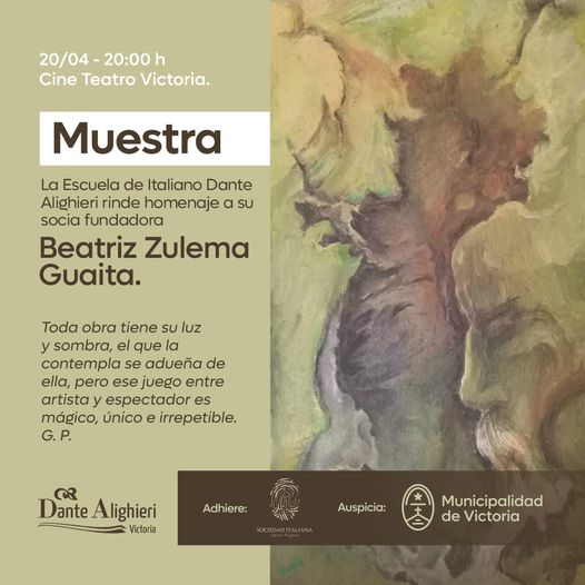 HomepageLocalesMuestra Pictórica de Beatriz Zulema Guaita Locales Sociedad Muestra Pictórica de Beatriz Zulema Guaita Victoria Al Día Posted on 12/04/2024 Victoria La Municipalidad de Victoria auspicia una muestra pictórica de la artista Beatriz Zulema Guaita. Se realizará, con entrada libre y gratuita, el 20 de abril en el Cine Teatro Victoria ( Alem 64) a partir de las 20:00 h. Navegación de entradas Previous PostInternaron a Víctor Heredia: el mensaje del reconocido cantautor popular Next PostLadrones golosos You Might Also Like Nacionales “En ese viaje aprendí a tenerle respeto a muchas cosas”, dijo el joven que cayó de un hotel en Bariloche Victoria Al Día 02/09/2025 Nacionales Revelan cómo la yerba mate puede beneficiar a personas con diabetes y controlar la obesidad Victoria Al Día 03/07/2025 Nacionales Cronograma de pagos de Anses: comienza hoy y sigue hasta fin de noviembre Victoria Al Día 10/11/2025 Noticias Fiebre amarilla: por su alta letalidad, instan a vacunarse antes de viajar al sur de Brasil Victoria Al Día 16/10/2025