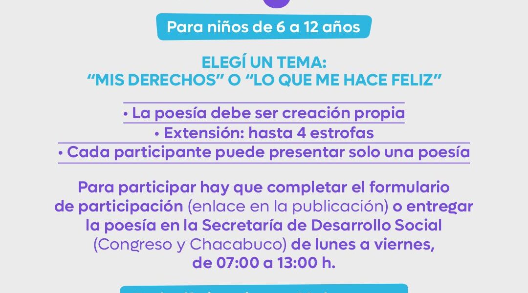 Habrá reconocimientos y sorpresas para los poemas más creativos, que se entregarán en la celebración del Día del Niño el sábado 30 en el parque de zona puerto.