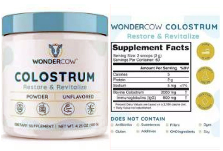 Según se informó, “las actuaciones se iniciaron a partir de una consulta de un particular ante el Instituto Nacional de Alimentos (INAL) en relación a la genuinidad del producto rotulado como: ‘Dietary Supplement – Colostrum, Restore & Revitalize, marca: Wondercow, NET WT. 4.23 OZ (120 G)‘, que no cumpliría con la normativa alimentaria vigente”, lo que encendió las alertas dentro del organismo.