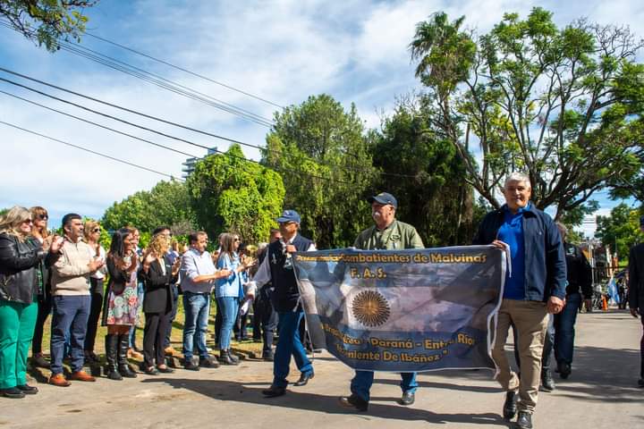 • Desconcentración para dar inicio al desfile frente al palacio de autoridades de los ex Veteranos de Malvinas, Fuerzas de Seguridad y establecimientos educativos presentes.